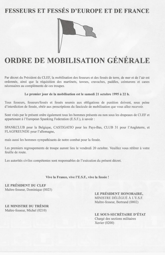 Convocation : Rendez-vous spécial où la fessée risque de se passer. Les convocations sont faites par le collège des Maîtres-fesseur ou par le Président du CLEF et cela ne rigole pas !